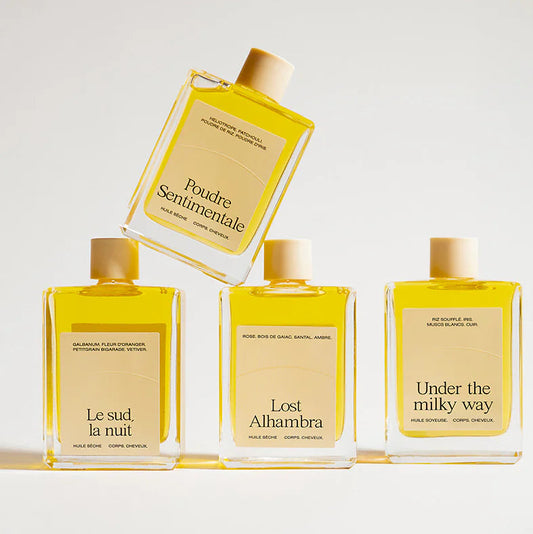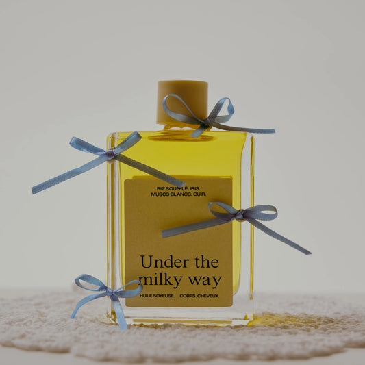 A dry body and hair oil that nourishes, revitalizes, and envelops skin in the sophisticated fragrance of puffed rice, iris, white musk, and leather. Created by master perfumer Margaux Le Paih Guérin, the scent combines gourmand notes of popcorn and salted caramel with the elegance of iris for a magnetic, captivating trail that lingers throughout the day. The lightweight formula absorbs instantly with no greasy residue, leaving skin soft, glowing, and radiant. Organic grape seed oil and apricot kernel oil deliver deep nourishment, while phytoceramides-6 from sunflower restore vitality and shine to both skin and hair. 96% natural origin ingredients.